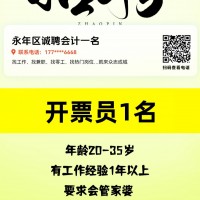 招聘 店员1名, 内账,会管家婆,中午管饭, 地址:火车站北300米