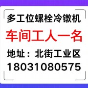 招聘 招工信息 多工位冷墩机技师(30栓需要有经验的,没经验的不要)二名 新高速机全套 三台 工资过万 有计划详询与我们一起奋斗未来