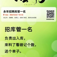 招聘 女库管(紧固件仓库)工作:仓库货物的出入库,仓库货物盘点,仓库卫生等管理工作工作要求:有3-5年管理紧固件仓库的经验(新手