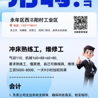 招聘 本料厂诚招:记账会计一名,要求:工作经验1年以上,懂电脑,勤快事情少的,年龄20-40左右。工资面议,有意者电话联系。地址:永