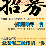 招聘 招拔料工人两名一天两车料非诚勿扰只要熟手地址明阳村附近