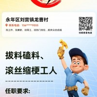 招聘 沙河东环工厂招聘滚丝工人2名男女不限,包工常年有活