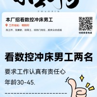 招聘 本厂招看数控冲床男工两名要求工作认真有责任心.年龄30-45.工作地址:明阳村