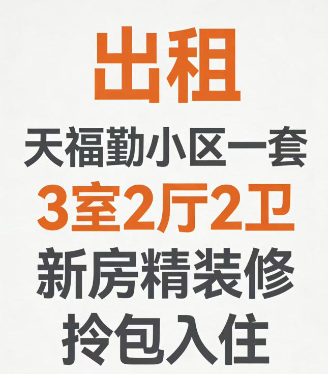 出租天福勤小区一套3室2厅2卫