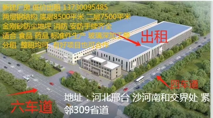 出租车间10000平米。沙河南和交界处,紧邻309省道!水电天然气蒸汽都有
