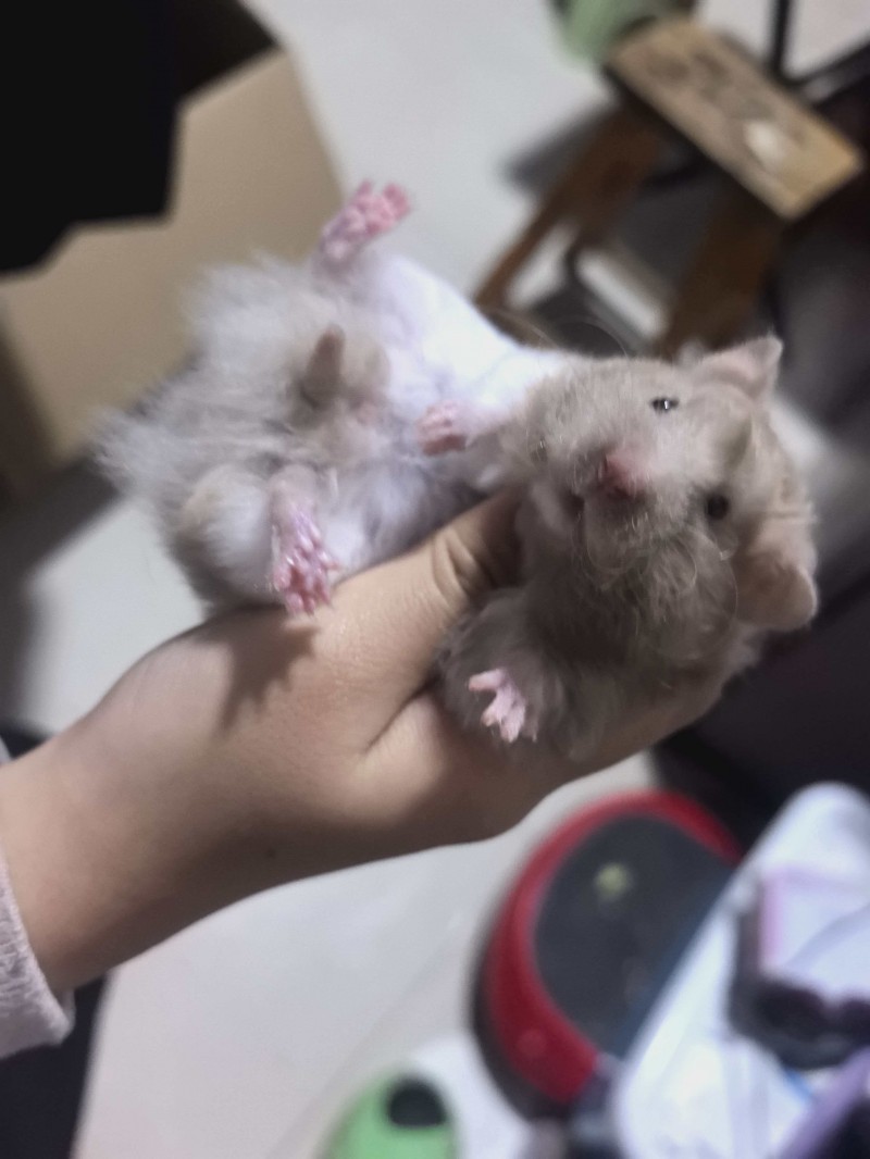 自己养的金丝熊,下了6只长大了,非常可爱好养,小朋友特别喜欢。100元两只,管送到家